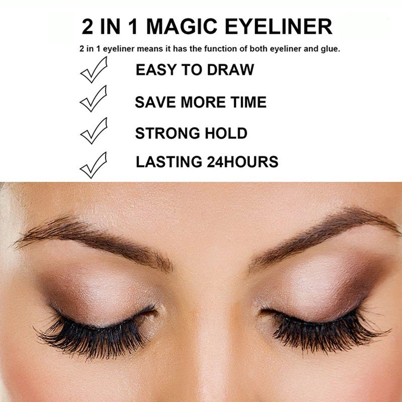 Sihirli astar kalemi -- 2- In-1 eyeliner, hem göz kalemi hem de tutkal işlevine sahip olduğu anlamına gelir. Sihirli göz kalemi, manyetik eyeliner ve kirpik yapıştırıcısı yerine olabilir.